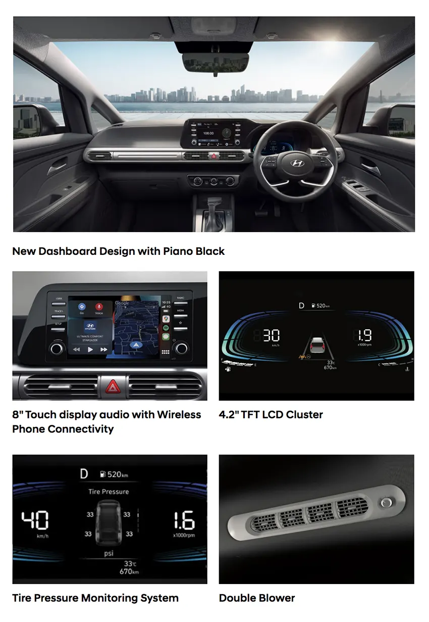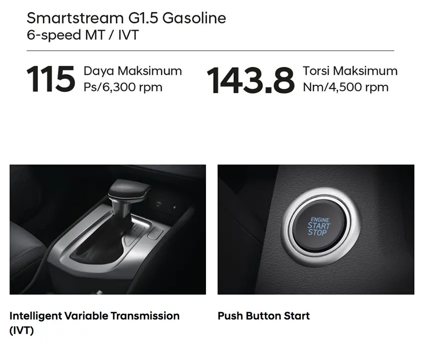 STARGAZER Essential dilengkapi mesin Smartstream 1.5L yang dapat menghasilkan performa tangguh, responsif, serta efisien. Fitur Drive Mode juga tersedia untuk pilihan gaya berkendara yang paling sesuai untuk Anda.