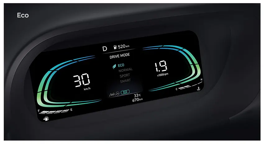 New STARGAZER hadir dengan empat gaya berkendara. Normal untuk mengemudi sehari-hari, Eco untuk efisiensi bahan bakar, Sport untuk performa kendaraan yang lebih maksimal, dan Smart yang secara otomatis menyesuaikan interval perpindahan gigi berdasarkan pola pengemudi.